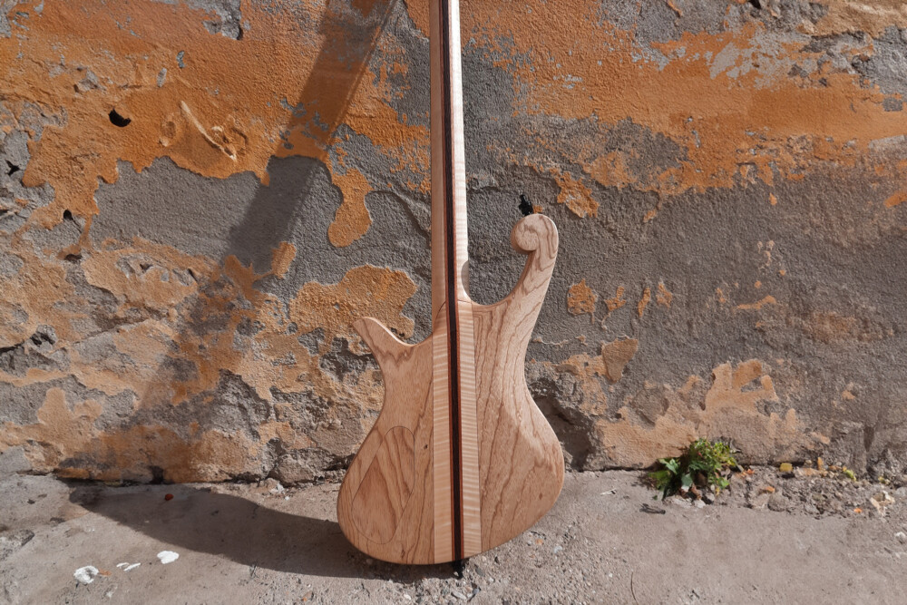 Austria’s 13 Custom Instruments recently completed a gorgeous bass they dubbed the Alex 4, which caught my attention. The swamp ash body has a unique multi-part top with stripes of lime, pear, walnut, zircote, wenge, rosewood, and ebony set in a color gradient. Its top is also curved over a one-meter radius, builder Daniel Furian says.